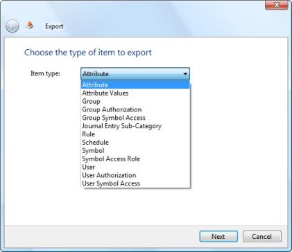 C:\Users\Me\ExportFiles\SymbolDescriptionsExport.txt. This field applies to Attributes Schedules, Symbols, and Symbol Access Roles.Group membership file (optional): To export group membership information, select Include group memberships. For Group membership file Location, type a folder location for the membership file along with the file name and extension (.txt) to which to save it. For example,