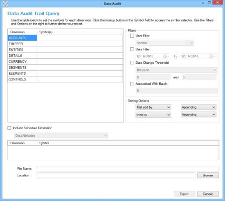 - Select Tools > Audit > Export. The Data Audit dialog displays, as shown below: