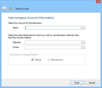 - Click Add to define an account for the elimination. The Add Account dialog opens.