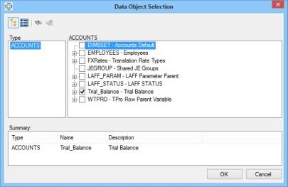 Note: The data query defaults to the user attribute values found in the UGPD[DimensionNumber]QueryDefault attributes. In addition, if you have access to only one symbol in a dimension, the selection defaults to that symbol.