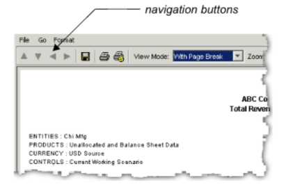 Note: A report contains more than one page only if you selected the With Page Breaks view mode. Otherwise, the report contains one page only, and the navigation buttons are inactive.