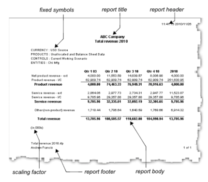 | footer | The footer provides additional report information, such as page numbering. |