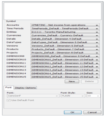 - In the Symbol section, select a symbol for each dimension in the database, to specify the cell’s coordinates.