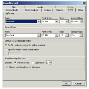 | row formats | You can change the row heading formats as well as the row heading widths in a report. |