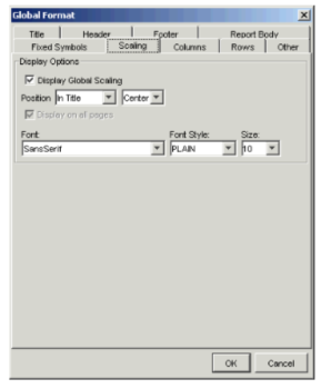 - In the report view, choose Format > Edit Global Format. The Global Format dialog appears, with the Title tab in view.