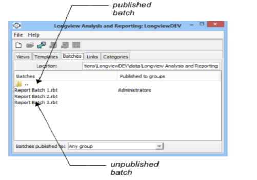 If you are happy with these settings, click OK. The batch files are unpublished from the groups listed in the Published to groups field, and the Longview Analysis and Reporting dialog appears.