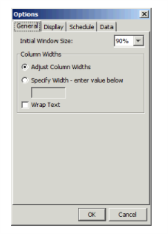 - For Initial Window Size, select the size in which you want the DataView to appear when you first open it.