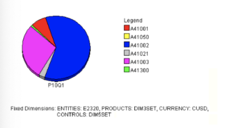 A pie chart is a chart in which each symbol in the down dimension appears as a sector of a circle, in proportion to its share of the total parent value (the total value of the pie). When you view data in pie chart format, you see one pie for each symbol in the across direction.