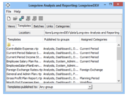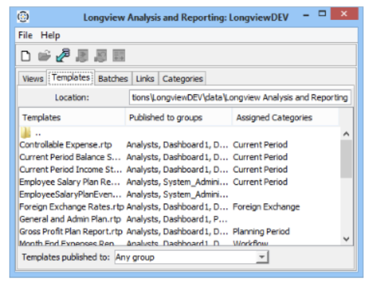 - In the Longview Analysis and Reporting dialog, click the Templates tab.