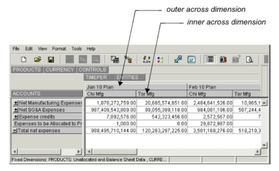 If there is more than one dimension in either the down or across directions, the innermost dimension (the one closest to the data), is called the inner dimension. Each of the others is called an outer dimension.
