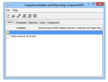 - In the Longview Analysis and Reporting dialog, click the Views tab. A list of all your locally saved DataViews appears.