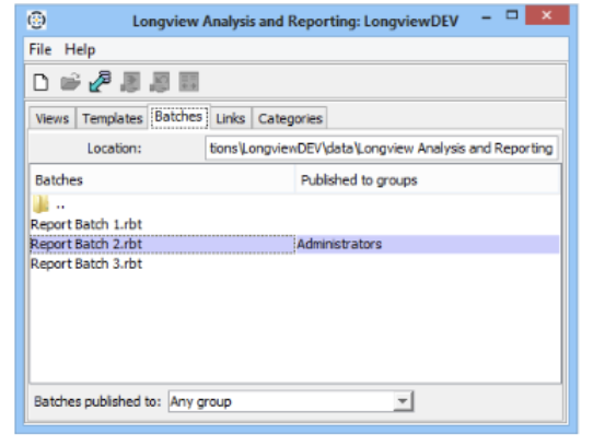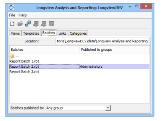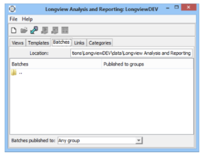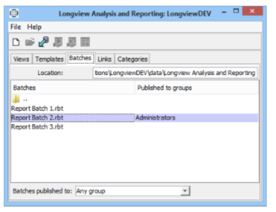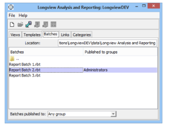 - Open the Longview Analysis and Reporting dialog, click the Batches tab.
