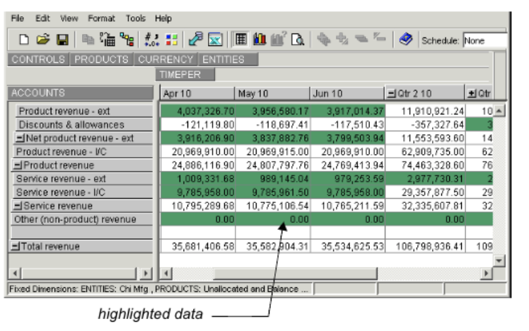 For example, in the following illustration, you may want to highlight all numbers less than or equal to 10,000,000, for easier identification and analysis.