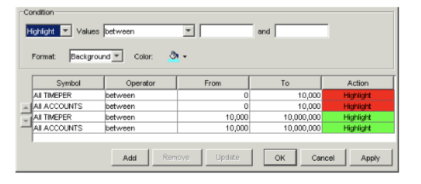 Field Description Top left drop-down list Select one of the following: - Highlight: To highlight the cells containing data meeting the condition.