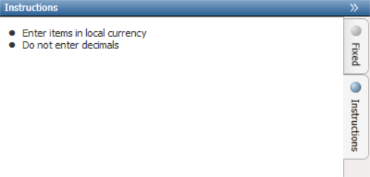 Use this function to include the Instructions tab in a Data Grid. The Instructions tab appears below the Fixed tab on the right-most edge of a Data Grid. You can write your own custom instructions using HTML.