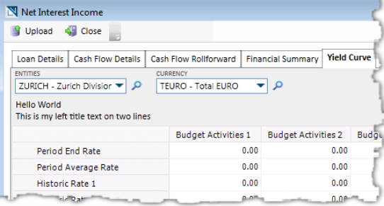 Use this function to include additional information in the top left section of your Data Grid. Left title text appears just below slice dimensions or at the top of the Data Grid if you do not have slice dimensions. You can include attribute tokens and string variables in the text.