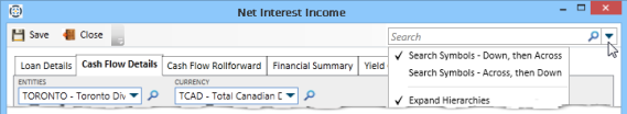If the Search box is available in the Data Grid, Longview App users can modify the Search options within the Data Grid using the drop-down list. Longview App users cannot show or hide the Search box. Longview App users can use the Search box to search symbols only, including temporary symbols.