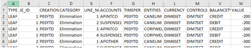 - FileName1 is the name for the created ASCII file, containing the journal entry details data for base dimensions in comma delimited format. It can include a complete or partial folder path in the format C:\...\FileName1. If FileName1 includes spaces, enclose it in double quotation marks; for example: