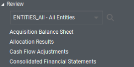 The following graphic shows a symbol selector for the ENTITIES dimension above a folder, and a symbol selector for the ACCOUNTS dimension under a folder.