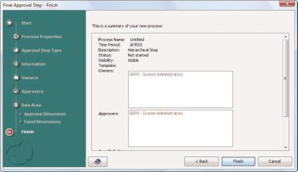 Note: There are two ways to create an approval process — by completing individual dialogs, or by using the wizard. This section demonstrates the wizard method only.