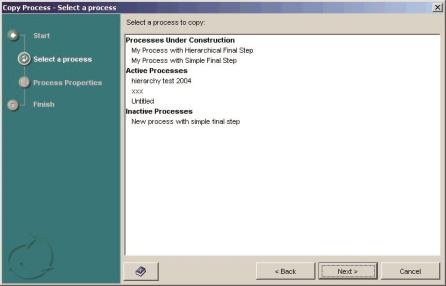 - Select the process you want to copy and click Next. The Process Properties dialog of the wizard appears.