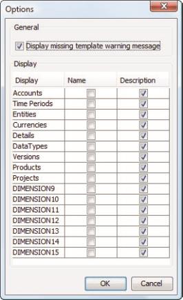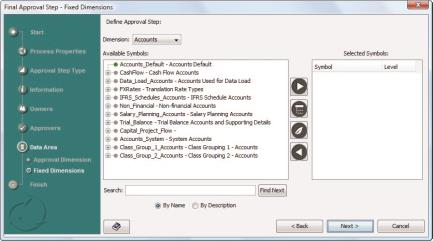 - For Display, for symbols in the various dimensions of your database, specify whether you want the approval process to display their symbol name, symbol description, or both.