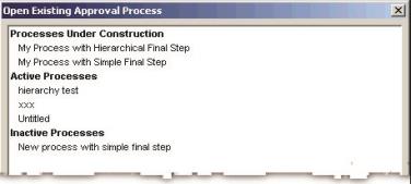 - Choose File > Open Process. The Open Existing Approval Process dialog appears.